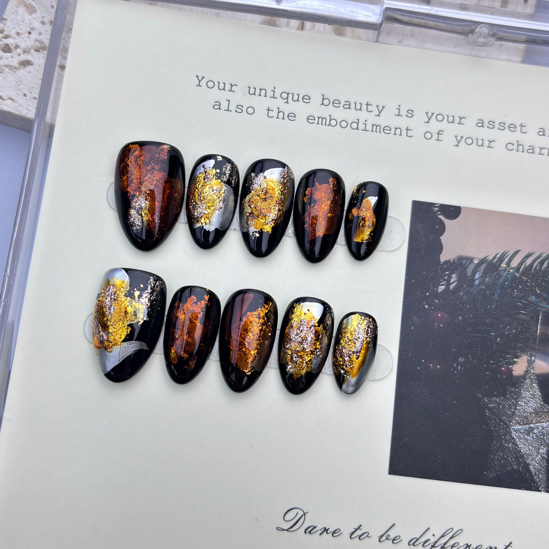 Patterns: Starry sky, gold foil flash, iced transparent effects.